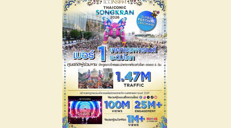 ไอคอนสยามผนึกพันธมิตรจัด Water Festival สุดยิ่งใหญ่นำ “งานมหาสงกรานต์ไทย” ขึ้นแท่นเทศกาลระดับโลก“ICONSIAM THAICONIC SONGKRAN 2026 : สาด สนุก สุข สิริมงคล สงกรานต์ไทย”มั่นใจกระตุ้นเศรษฐกิจไทยและดึงดูดนักท่องเที่ยวจากทั่วโลก